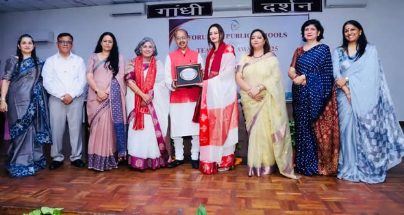 Our Principal, Dr. Sangeeta Bhatia, received the FICCI ARISE Excellence Award 2023 for Outstanding Teacher Development from Dr. Joseph Emmanuel (CBSE Director-Academics), alongside the school advisory board.”